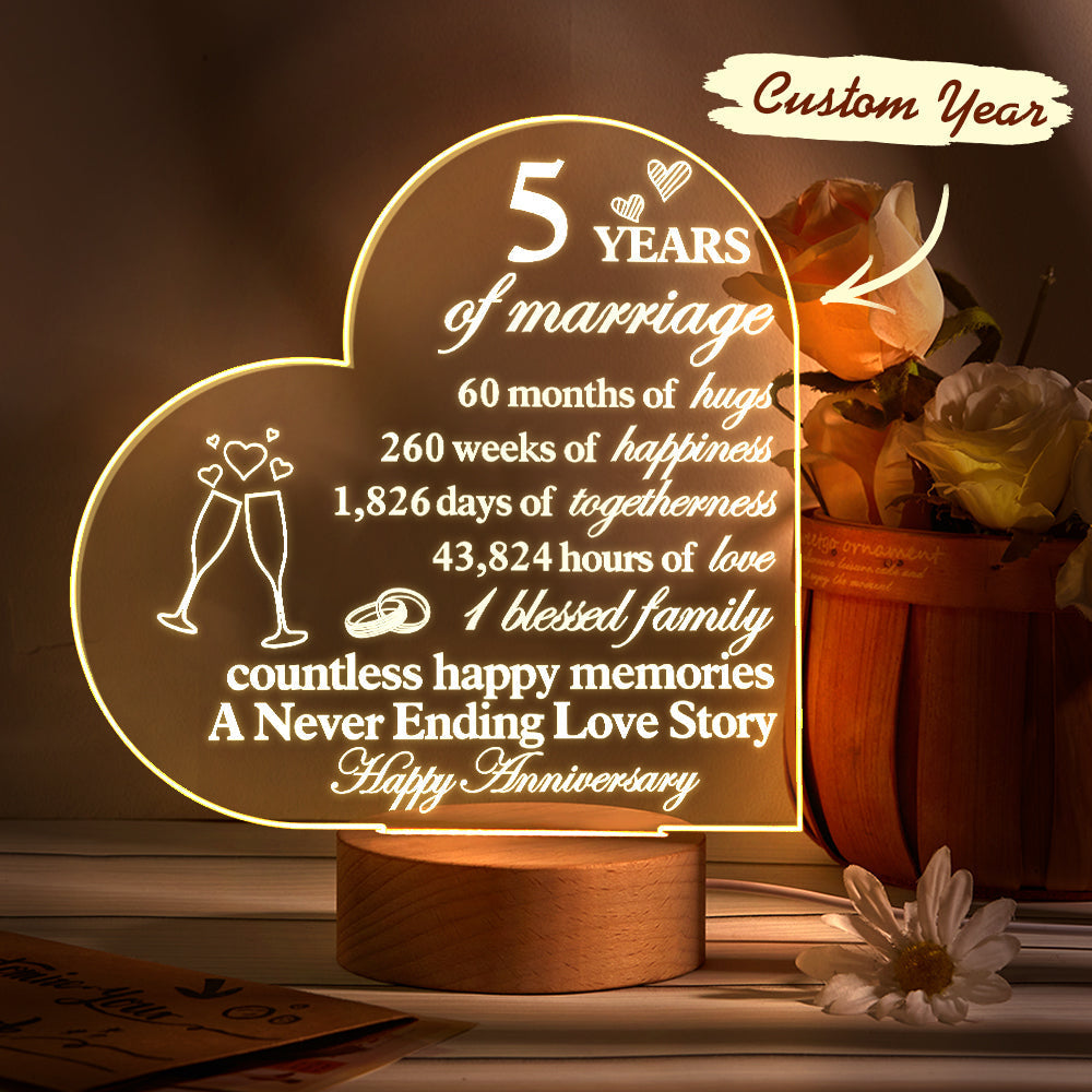 Personalised Anniversary Wedding Night Light Heart Shaped Acrylic Lamp Gifts for Wife Husband