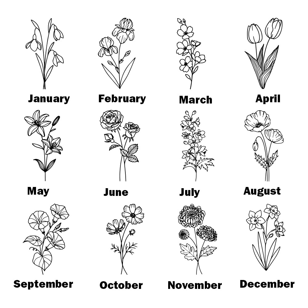 Personalized Birth Flower PU Leather Makeup Brush Bag with 8 Pcs Makeup Brushes Birthday Gift for Her