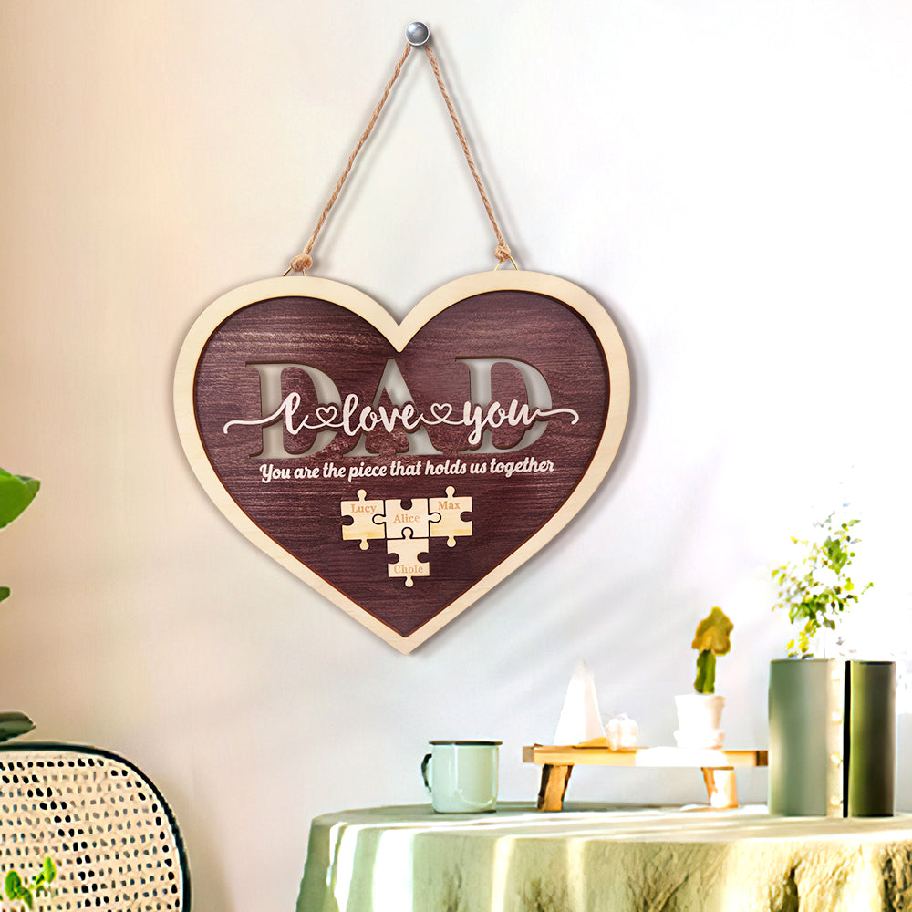 Personalized Dad Heart Puzzle Plaque You Are the Piece That Holds Us Together Father's Day Gift